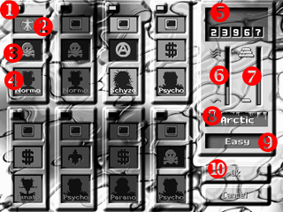 - Difficulty level: TOO EASY, EASY, NOT EASY, HARD and TOO HARD Difficulty goes easier more the player takes allied, and goes harder more the player choose foes and more foes are allied to each other.