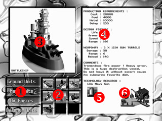 - Family selector: Units are classified in 4 families: GROUND UNITS, NAVY UNITS, AIR FORCES and DEFENCE UNITS. Click on a family to display the members unit.